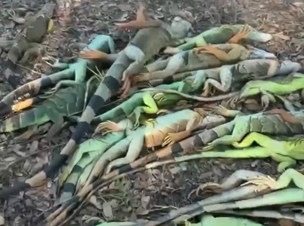 a Floridai Hal- és Vadvédelmi Bizottság sunrise-i irodájánál februárban egyetlen nap alatt több mint ezer példányt vettek át. Egyikük 50-100 állatot vitt be, egy másik pedig arról számolt be, hogy „több mint 100 fontnyi (mintegy 46 kilogramm) leguánt” gyűjtött össze rövid idő alatt.