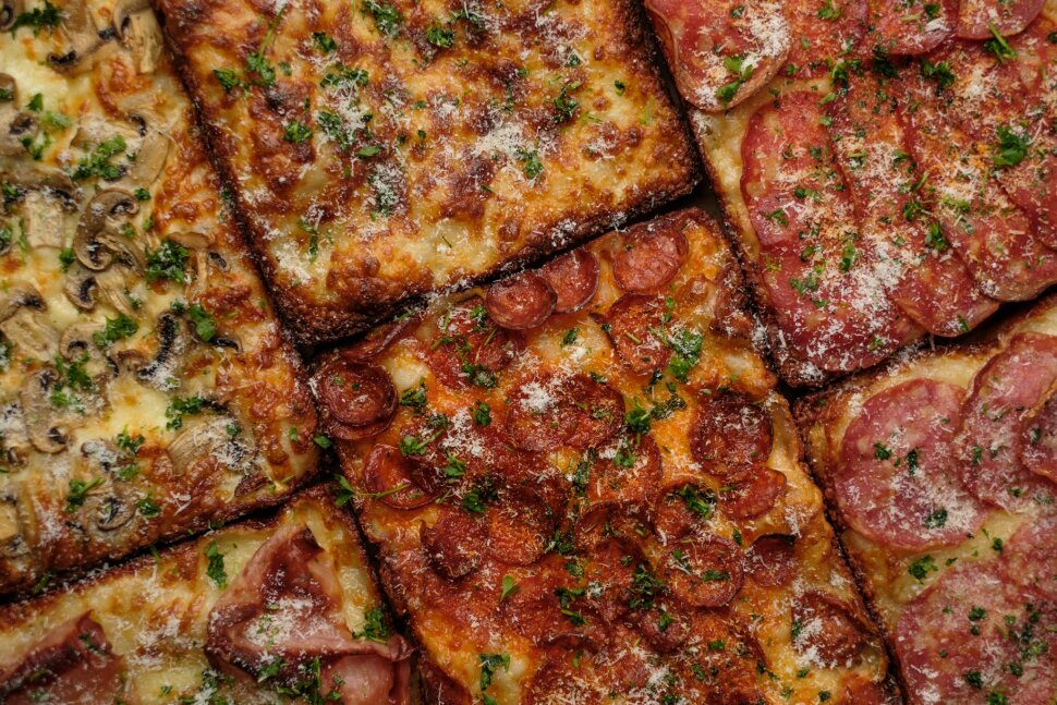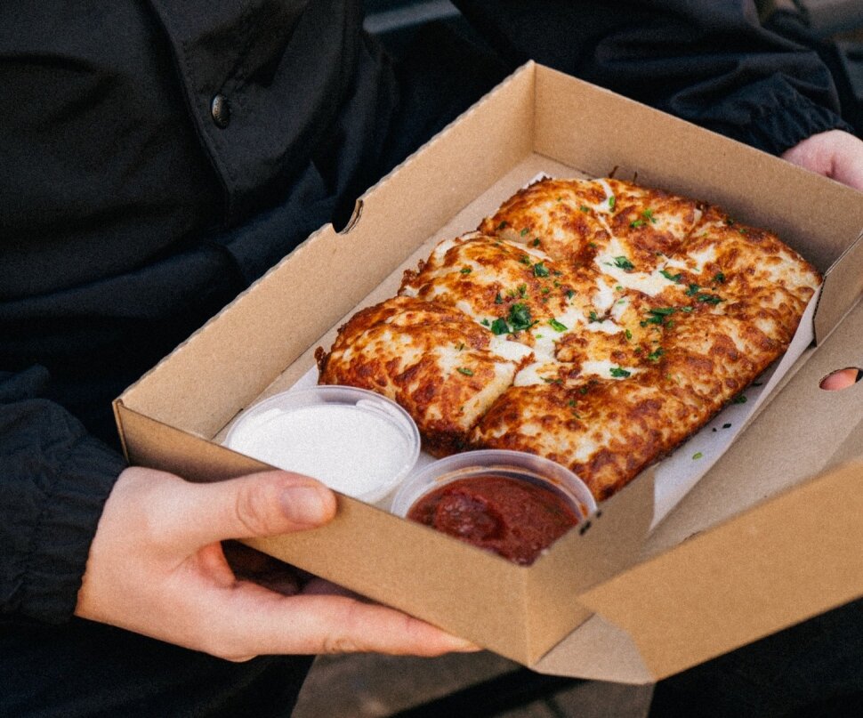 A pizza maga első ránézésre a detroiti stílust idézi: szögletes, vastagabb tésztájú darab, de a hasonlóság itt nagyjából véget is ér. Ez a verzió könnyű, puha, mégis roppanós szélű, nem úszik paradicsomszószban, és a feltétezése tudatosan a magyar gyomornak kedvez. A tészta élesztős, 24 órán át kelesztett: az alja ropogós, a belseje buborékos és légies.