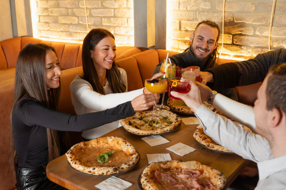 Minden pizza kovászos tésztával készül, de kérhető duplakovászos változatban is, ami még könnyedebb szerkezetet ad, és azok számára is ideális, akik érzékenyebbek a hagyományos tésztákra. Emellett laktózmentes és gluténmentes opció is elérhető, így a társaság minden tagja találhat magának megfelelő változatot. A pizzák mellé minőségi, kézműves koktélokat és gondosan válogatott borokat kínálnak, amelyek természetes módon egészítik ki az ízeket.