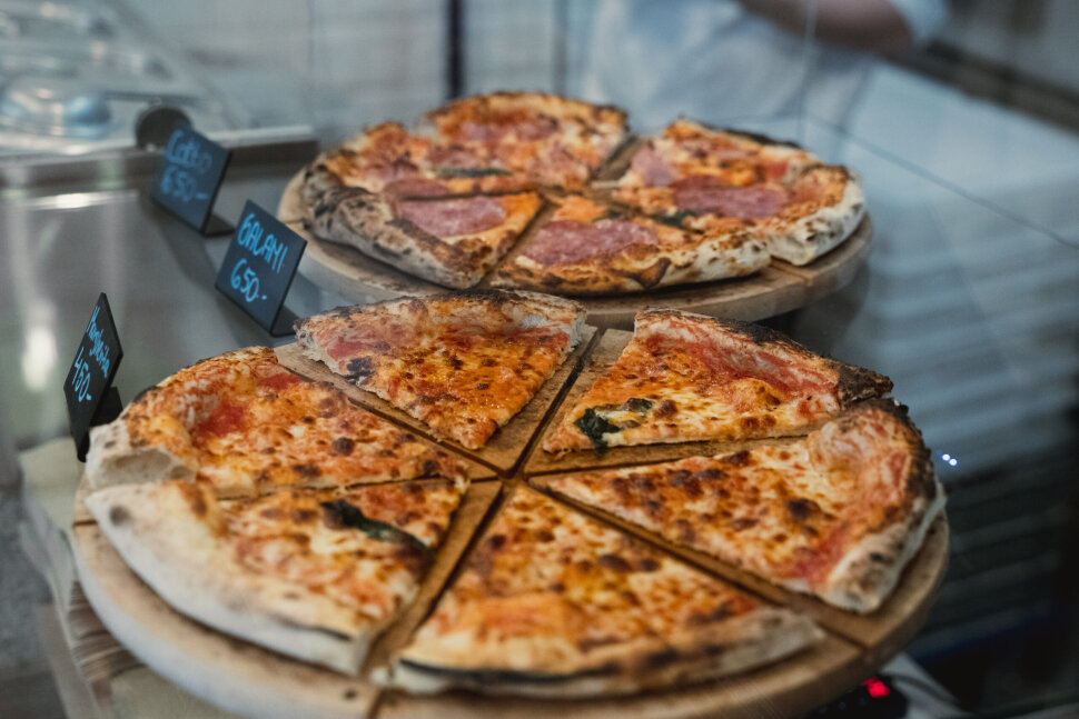 A Ráday utca elején működő Pizza Fetta tudatosan nem ült fel a nápolyi pizzalázra. Miközben a város tele van hólyagos peremű, leheletvékony tésztájú korongokkal, itt a kovász és a pizza szelet lett a főszereplő.