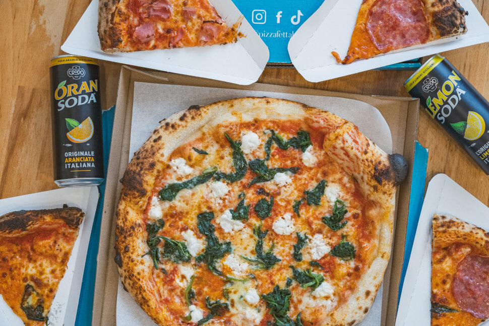 A Pizza Fetta egyik nagy erőssége, hogy mindezt kifejezetten kedvező áron adja – akár szeletet, akár egész pizzát választunk, az ár-érték arány végig korrekt marad. Az alacsonyabb árkategória ellenére prémium olasz feltétekkel dolgoznak: nápolyi vagy spianata csípős szalámi, csípős ’nduja, szarvasgombakrém kerülhet a tésztára, de az extrák sora is hosszú, még ananászt is kérhetünk, ha épp úgy tartja kedvünk. A liszt, a paradicsom és a feltétek is olasz forrásból érkeznek, a minőség itt alapvetés. Jó hír, hogy vegán sajt is elérhető náluk! A pizzák mellé olasz italok közül is válogathatunk: Fonti Di Crodo szénsavas üdítők, Birra Moretti és Peroni sörök, valamint Manetti kávé teszik teljessé az élményt.