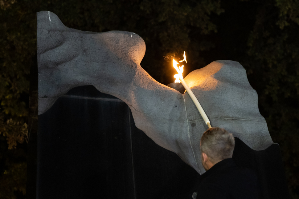 A Tisza Párt elnöke az 1956-os forradalom előestéjén egy rövid beszéd után meggyújtotta az emlékmű tetején lévő mécsest: