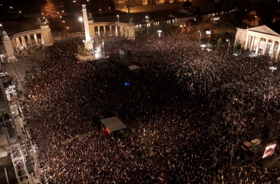 Ekkora volt a tömeg - drónfotókon a Hősök terén tartott Rendszerbontó Nagykoncert