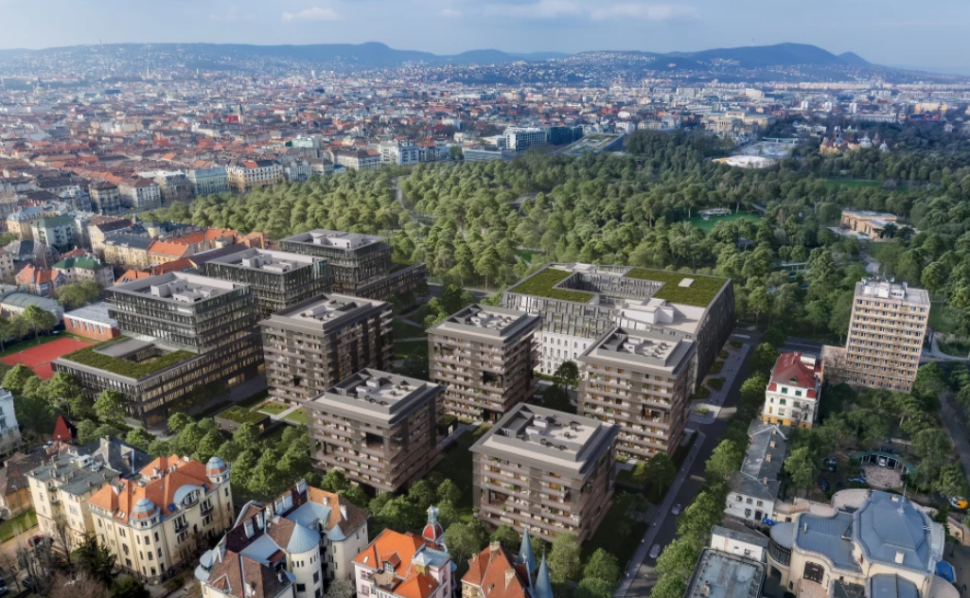 A Dürer Park területén már ötödik éve zajlanak a munkálatok, a bontást 2020-ban kezdték el. Azóta elkészült két nagy irodaház, most pedig az öt lakótorony építése folyik.