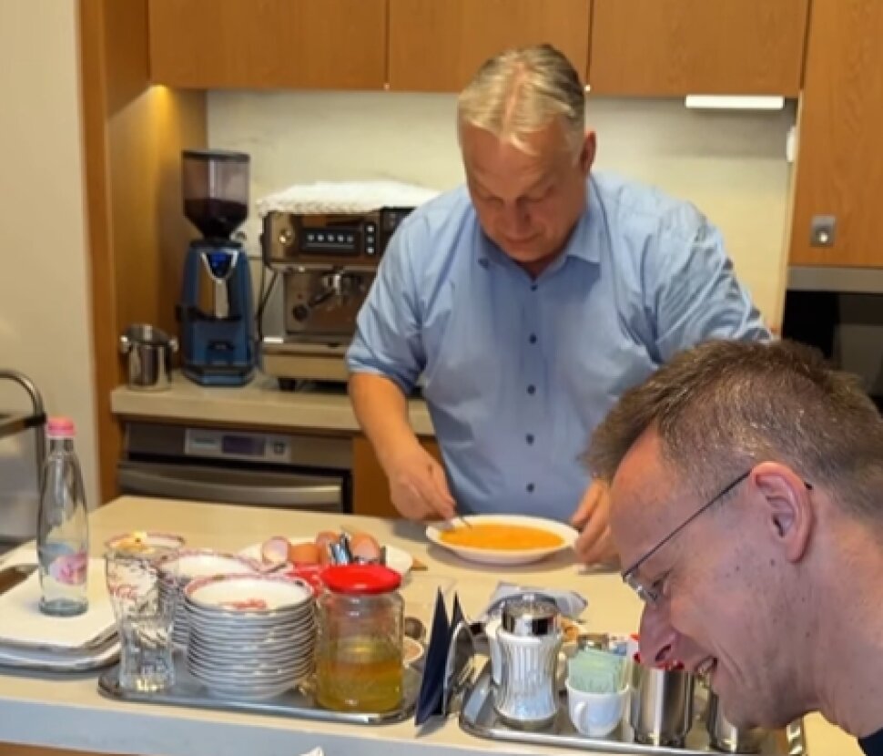 Orbán Viktor és Szijjártó Péter a Védelmi tanács ülése előtt közösen készítettek meguknak ebédet. Erről egy videót is megosztottak, melyen bemutatták, hogy főzték a "kolis menűt", azaz rántottát sajttal.