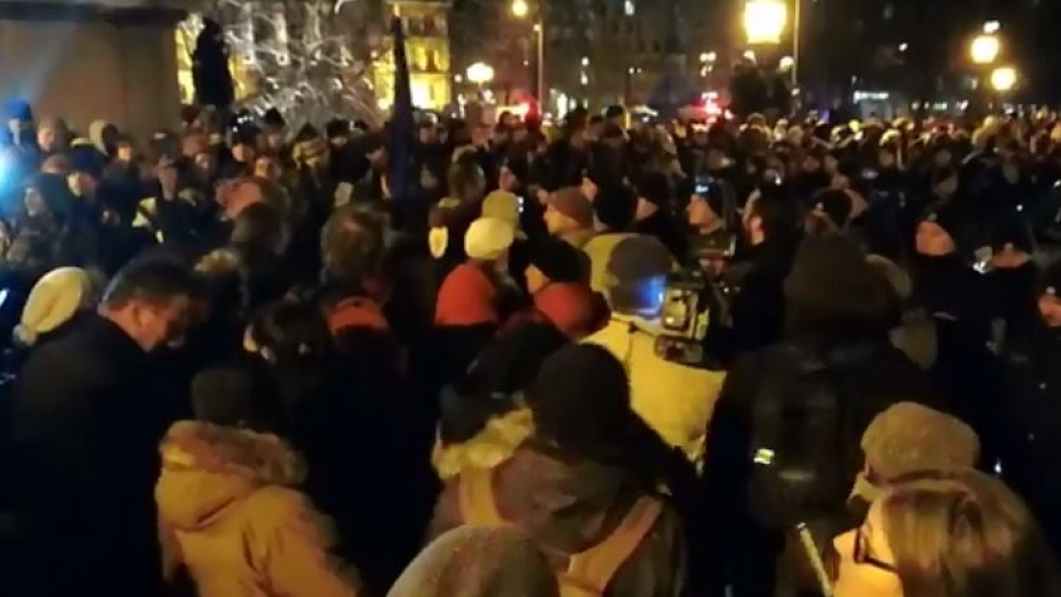 "Köszönjük, hogy a rendőrség segít blokád alatt tartani a Lánchidat... A rendőrség is velünk van" - skandálták többek között a budapesti tüntetés résztvevői, akik a délutáni Várkert Bazárnál tartott demonstrációt követően a Lánchíd felé indultak el.