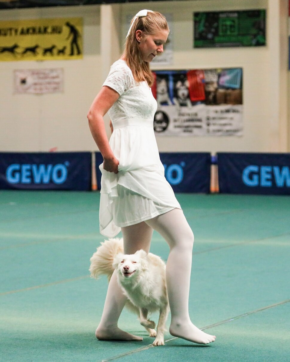 Fejérné Schneider Hanna nemrég részt vett Miával, a vak és süket border collie-val egy dog dancing versenyen a Senior/Handicap osztályban (a videót ITT láthatod róluk). Kriz Orsi Dog Dancing kutyaakadémiáján készítették fel őket erre a műsorszámra, amelyen elég magas pontszámmal végeztek.
