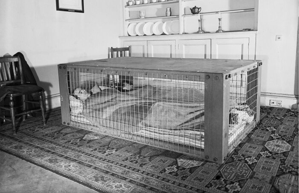 De nemcsak a hétköznapi kényelmet akarták kimaxolni, hanem a túlélést is. A Bored Panda gyűjtéséből kiderül, hogy a háborús fenyegetés egészen elképesztő szerkezeteket szült. 1938-ban Angliában például bemutattak egy gáztámadás-biztos babakocsit, a második világháborús bombázások alatt pedig a britek a „Morrison-shelter” nevű, megerősített acélasztal alatt aludtak a saját hálószobájukban (nyitóképünkön).